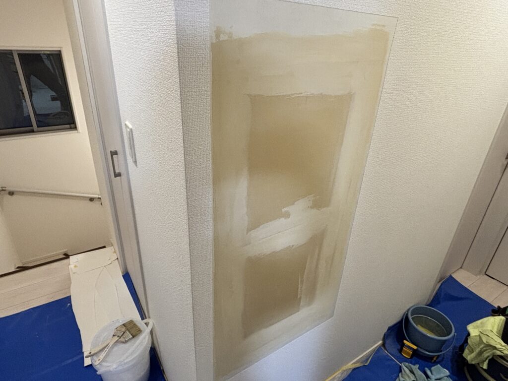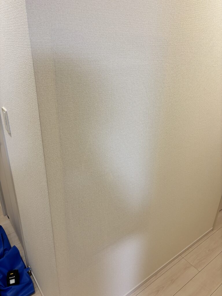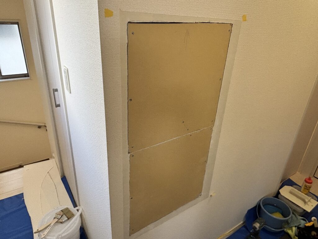 継目をパテ処理して面出ししてから、剥がしたクロスを貼り戻しました。