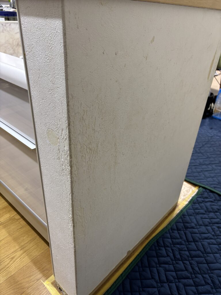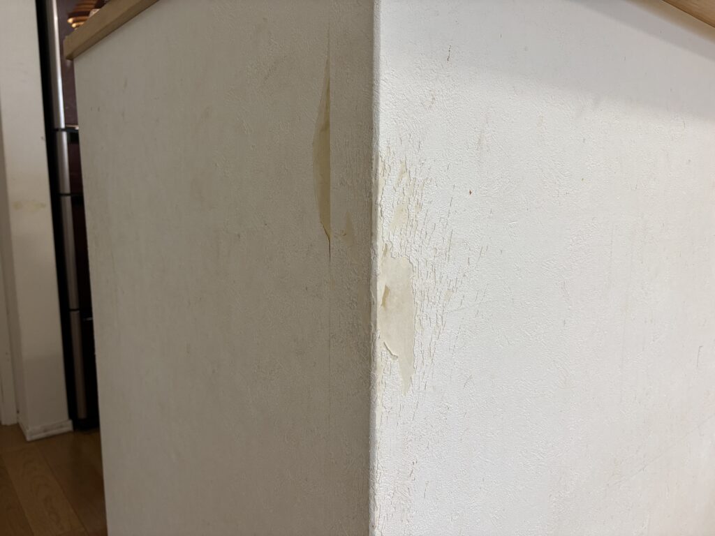 クロスを剥がしたあと角の陥没も補修して新しくクロスを貼りました。