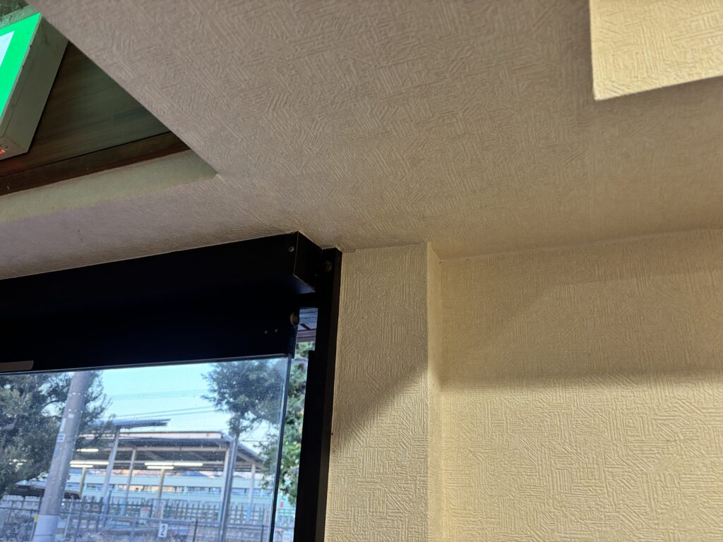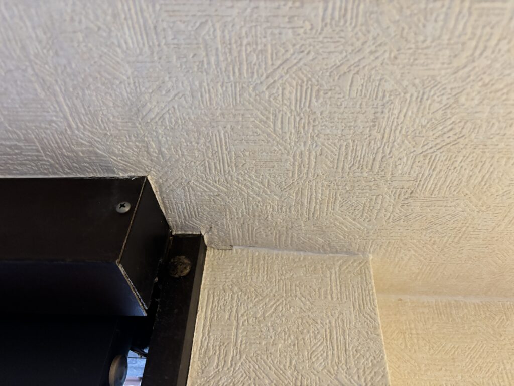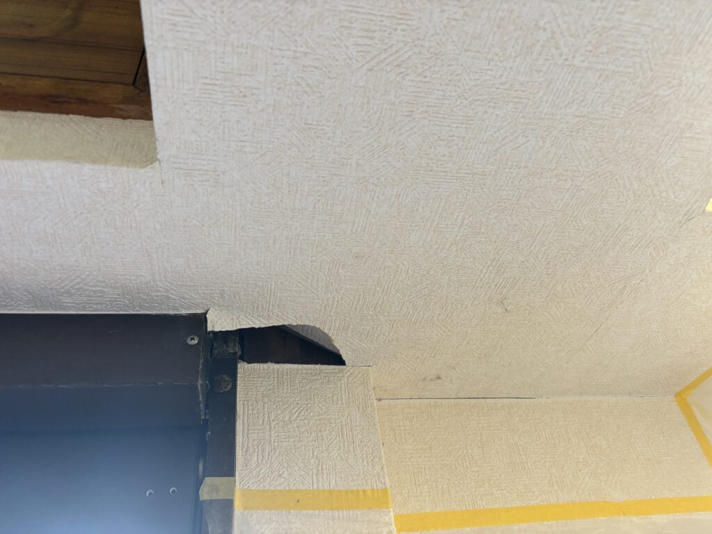 天井の下地がない箇所に突っ張り棒を設置して穴が空いてしまったようです。
